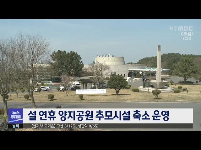 설 연휴기간 동안 양지공원 추모시설이 축소 운영됩니다. 제주도는 코로나19 재확산 방지를 위해 오는 21일부터 24일까지 양지공원 봉안당 제례실과 휴게실을 폐쇄합니다. 또 방문객의 추모 시간을 30분에서 5분으로 단축하고, 실내 음식물 반입과 섭취도 금지합니다.