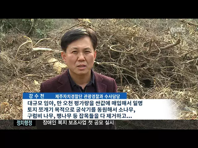 ◀ANC▶ 제 2공항 예정지 근처의 임야를 사들인 뒤 대규모로 산림을 훼손한 농업회사 법인 대표가 경찰에 붙잡혔습니다. 일명 토지 쪼개기 수법으로 비싼값에 되팔기 위해서였다고 합니다. 김항섭 기자의 보도입니다. ◀END▶ ◀VCR▶ 커다란 나무들이 빽빽이 있어야 할 자리에 갓 심은 묘목들이 가득합니다. 임야 곳곳...