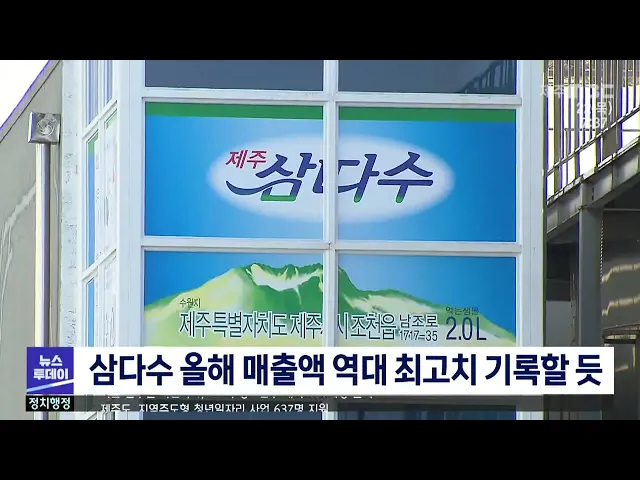 제주 삼다수의 올해 매출액이 역대 최고치를 기록할 것으로 보입니다. 제주도개발공사는 올해 삼다수 매출이 지난해보다 10% 증가한 3천 350억 원을 달성할 전망이라고 밝혔습니다. 국내 먹는 샘물시장에서 제주 삼다수의 점유율은 42.8%로 생수 브랜드 가운데 1위를 유지하고 있습니다.