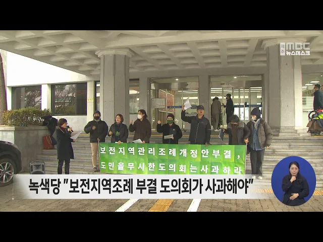 제주녹색당은 보전지역 관리조례 개정안이 부결된 것과 관련해 제주도의회 앞에서 기자회견을 열고 주민발의 취지를 무시하고 도민의 염원을 저버린 도의회는 사과하라고 요구했습니다. 이들은 도의회가 부결 사유로 삼은 법제처의 해석은 법적 구속력이 없고 최종 판단은 도의회가 하는 것이라며 책임을 떠넘기고 있다고 ...