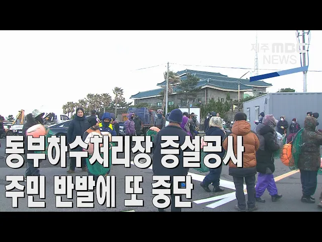◀ANC▶ 5년 넘게 주민 반대로 공사가 중단된 제주 동부하수처리장 증설 공사가 재개됐지만 주민 반발에 시작도 못하고 또 다시 중단됐습니다. 착공 이후 벌써 네 번째 중단인데, 제주도와 주민 사이 입장 차가 좀처럼 좁혀지지 않고 있습니다. 김항섭 기자입니다. ◀END▶ ◀VCR▶ 제주 동부하수처리장 진입로 입구. ...