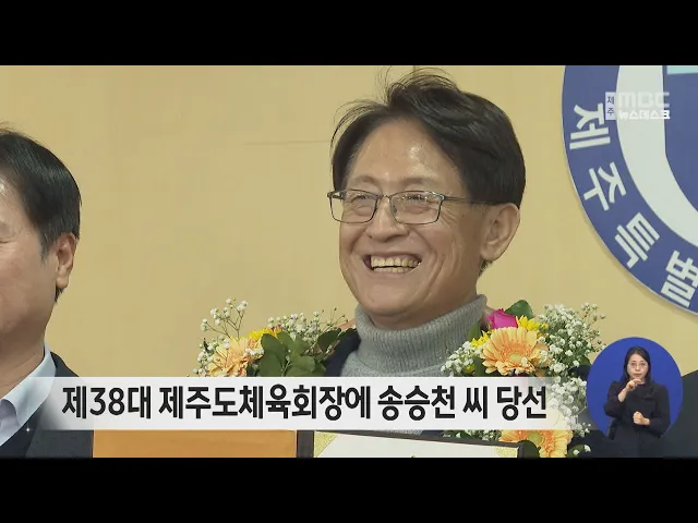 제38대 제주도체육회장 선거에서 송승천 후보가 당선됐습니다. 송승천 후보는 총 투표수 226표 가운데 182표를 얻어 44표를 획득한 전정배 후보를 누르고 당선됐습니다. 송승천 회장은 제주체육 예산 확보에 힘써 2026년 전국체전 준비에 만전을 기하겠다고 밝혔습니다. 송 회장의 임기는 오는 2027년까지 4년입니다.