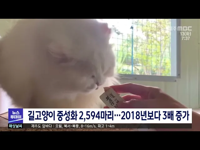 중성화 수술을 마친 길고양이 개체 수가 늘었습니다. 제주시에 따르면 올해 중성화 수술을 마친 길고양이는 2천 594마리로, 지난 2018년 786마리에 비해 세 배 넘게 증가했습니다. 제주시는 중성화 수술에 대한 시민 인식이 확산되고, 동물보호단체 등의 활성화로 포획 작업이 쉬워져 수술이 늘어난 것으로 보고 있습니다.