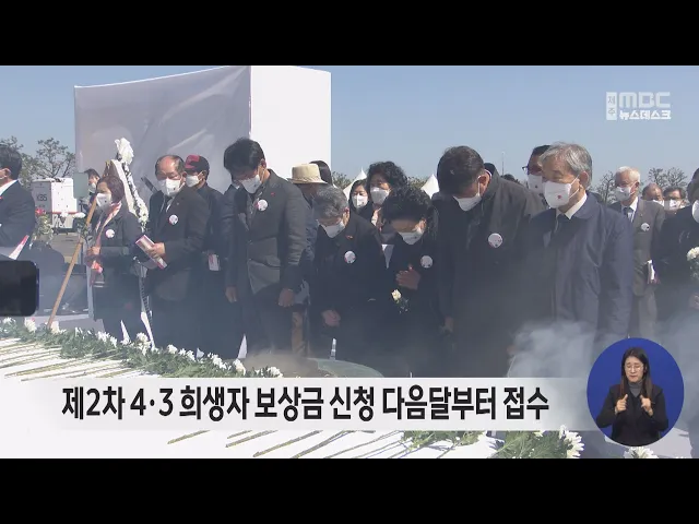 제주도가 내년 1월부터 제2차 제주 4.3사건 희생자 보상금 지급 신청을 받습니다. 신청 대상자는 4.3 생존 희생자 본인 또는 희생자의 민법상 상속권자 등 2천 500명이며, 신청은 오는 2025년 5월까지 6차례로 나눠 진행됩니다. 현재 제주도는 4.3 희생자 4백 명에게 보상금 239억 원을 지급했습니다.