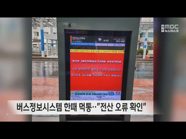 버스안내정보시스템이 오전 한때 먹통이 되면서 이용자들이 큰 불편을 겪었습니다. 제주도에 따르면 오늘(15일) 아침 7시부터 버스정보시스템 서버가 전면 다운되면서 버스정류소에 설치된 정보안내기 천400여 대가 작동을 멈췄습니다. 제주도는 오전 10시 반쯤 정상 복구했고, 네트워크 장비에서 발생한 전산 오류로 확인...