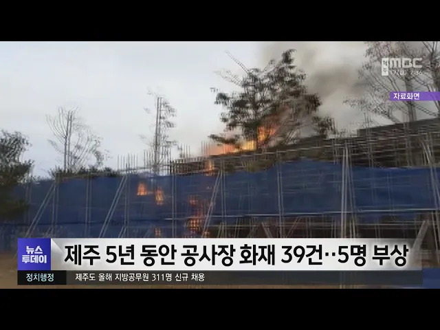 제주 5년 동안 공사장 화재 39건‥5명 부상