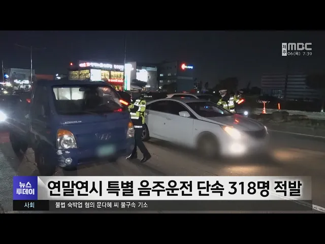 경찰이 연말연시 특별 음주운전단속을 벌여 300여 명을 적발했습니다. 제주지방경찰청은 지난해 11월부터 올해 1월까지 457회 음주단속을 벌여 음주운전자 318명을 적발했습니다. 음주운전 단속 건수는 작년보다 3.5% 증가했고, 같은 기간 음주교통사고는 61.5% 줄었습니다. 경찰은 음주운전 단속 강화로 교통사고가 60% 넘...