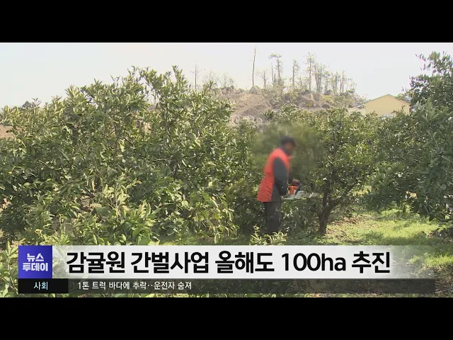 고품질 감귤 생산과 생산량 조절을 위해 감귤밭 나무 절반을 베어내는 간벌사업이 올해도 진행됩니다. 제주도는 올해 예산 2억 3천700만 원을 투입해 감귤원 100헥타르에 대해 간벌사업을 추진할 계획입니다. 간벌을 원하는 농업인은 오는 28일까지 농감협이나 감귤원 소재지 읍면동사무소에 간벌 신청서와 감귤원 소유권 ...