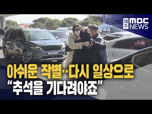◀ 앵 커 ▶ 긴 연휴가 끝나면서 고향을 찾았던 가족들이 하나 둘 일상으로 돌아갔는데요. 제주공항은 귀가객들로 종일 북적였고, 관광지에는 도민과 관광객들이 몰려 마지막 남은 연휴를 즐겼습니다. 김찬년 기자가 보도합니다. ◀ 리포트 ▶ 제주공항 출발대합실 앞에 길게 늘어선 차량들. 차 트렁크에는 고향에서 받아 가는 ...