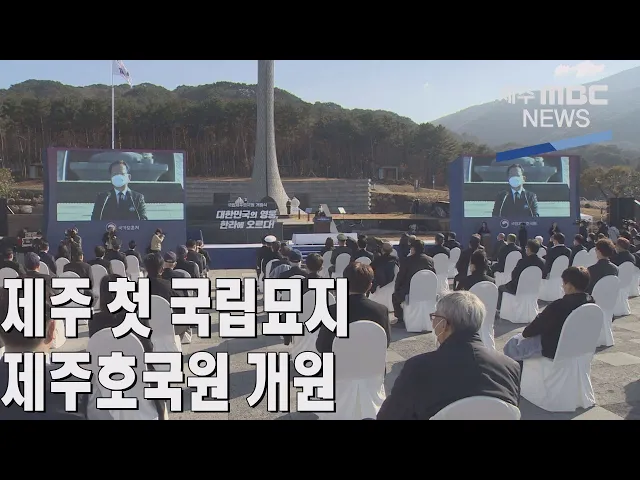 ◀ANC▶제주 첫 국립묘지인 '국립 제주호국원'이 조성공사 추진 9년여 만에 문을 열었습니다. 김부겸 국무총리 등이 참석해 열린 개원식에서는 한국전쟁에서 전사한 제주 출신 고 송달선 하사가 71년 만에 고향 땅에 묻히는 제1호 안장식이 거행됐습니다.김찬년 기자입니다. ◀END▶◀VCR▶71년 만에 고향에 돌아온고 송...