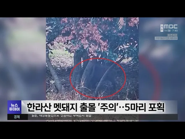 최근 한라산 탐방로에 멧돼지가 잇따라 출몰해 주의가 필요합니다. 그제(14일) 낮 12시 20분쯤 성판악 코스 탐방로에 멧돼지 7마리가 출모해 경찰과 엽사들이 출동했고, 엽사들이 멧돼지 5마리를 포획했습니다. 지난 12일과 13일도 성판악 코스에 멧돼지가 나타나 다친 사람은 없었지만 등산객 30여 명이 고립되거나 모노레...