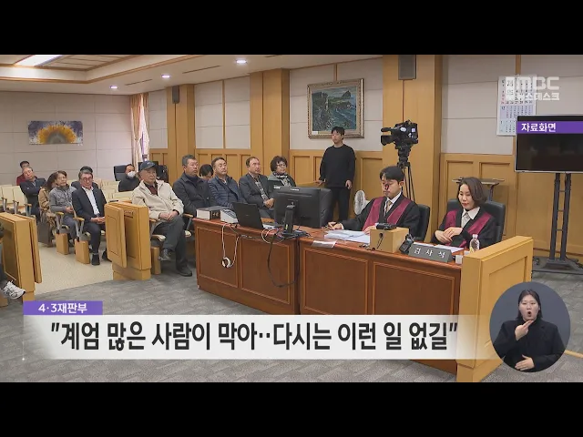 제주4.3 재심 사건을 맡고 있는 재판부도 이번 비상계엄 사태를 비판했습니다. 제주지방법원 방선옥 부장판사는 오늘(10일) 열린 제57차 군사재판 직권재심에서 "지난 주 계엄을 많은 사람들이 막아냈다"며 "다시는 이런 일이 없길 바란다"고 말했습니다. 재판부는 또 4.3희생자 김묘생씨 등 군사재판과 일반재판 수형인 50...