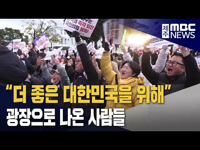 ◀ 앵 커 ▶ 탄핵안 통과를 앞두고 제주에서도 만 명이 넘는 도민들이 광장으로 나왔습니다. 학생과 직장인, 부모와 아이들이 한목소리로 민주주의 회복을 외쳤고, 역사적인 순간을 함께 하며 모두가 바랐던 건 더 나은 대한민국이었습니다. 김찬년 기자가 보도합니다. ◀ 리포트 ▶ 시청 주변을 빼곡히 매운 인파들. 추운 겨울...