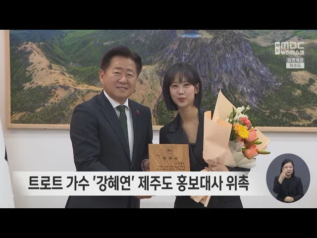 트로트 가수 강혜연씨가 제주도 홍보대사로 위촉됐습니다. 제주시 연동 출신인 강혜연씨는 2012년 걸그룹 이엑스아이디(EXID) 멤버로 데뷔한 뒤 2018년 트로트 가수로 전향해 활동하고 있습니다. 강씨는 앞으로 고향 제주의 브랜드 가치 제고와 지역경제 활성화를 위해 다양한 홍보 활동을 펼치게 됩니다.