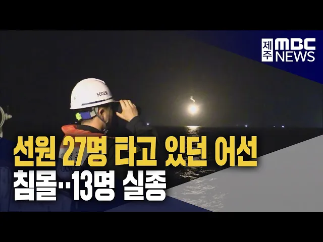 ◀ 앵 커 ▶ 오늘 새벽 제주시 비양도 근처 바다에서 선원 27명이 타고 있던 어선이 침몰했습니다. 14명은 구조됐지만 2명은 의식이 없고, 13명이 실종된 상태입니다. 보도국 연결해 자세히 알아보겠습니다. 김찬년 기자, 현재 사고 상황은 어떤가요? ◀ 리포트 ▶ 네, 침몰사고 신고가 들어온 건 오늘 새벽 4시 반쯤입니다. 제...