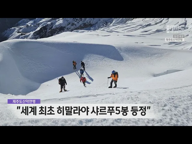 제주 산악인들이 세계 최초로 히말라야 샤르푸5봉 등정에 성공했습니다. 제주도산악연맹은 연맹 소속 산악인 5명으로 구성된 제주 샤르푸 브이(v) 원정대가 현지 시각으로 지난달 30일 오전 9시 20분 정상을 밟았다고 밝혔습니다. 희말라야 샤르푸5봉은 해발 6천328m 높이로 지금까지 산악인들이 오르지 못했던 봉우리입니...