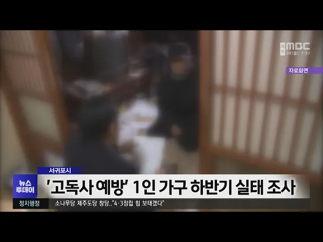 최근 잇따르는 고독사 사건에 서귀포시가 1인 가구 고독사에 대한실태 조사를 벌입니다. 이번 조사 대상은 만 50세가 되는 1인 가구와 상반기 조사 이후 서귀포시로 전입한 장년층 1인 가구입니다. 앞서 서귀포시는 지난 4월부터 한달 동안 2천400여 명의 장년층 1인 가구를 조사한 뒤 위험군 294가구를 발굴해안부확인 서...