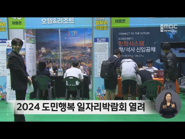 2024 도민행복 일자리박람회가 오늘(25일) 제주 한라체육관에서 열렸습니다. 이번 박람회는 '일 잡고 희방 잡고'라는 슬로건으로 열려 제주반도체와 제주신화월드, 스타벅스 등 호텔과 정보통신, 관광 등 40여 개 기업이 참여해 구직자와 일대일 현장 면접을 진행했습니다. 행사장에는 또 취업역량 강화를 위한 입사서류 클...