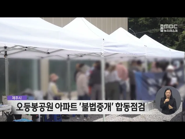 오등봉공원 민간특례 '위파크' 분양과 관련해제주시가 불법 부동산중개행위에 대한합동점검을 추진합니다. 제주시는분양 당첨자의 서류제출 계약 기간에 불법 중개행위가 있을 것으로 보고합동 점검반을 꾸려 계약 마감일인 다음달 4일까지 현장 점검을 벌이기로 했습니다. 주요 점검 내용은파라솔 등 임시 시설물 중개행위...