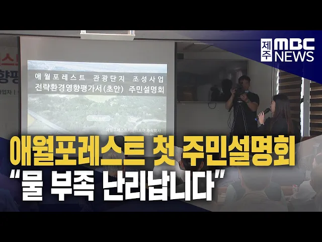 ◀ 앵 커 ▶ 제주시 애월읍 중산간에 추진되는 애월포레스트 관광단지 조성 사업에 대한 첫 주민설명회가 열렸습니다. 숙박업소 중심의 개발과 지하수 오염 문제, 교통 혼잡 등 주민들의 우려가 쏟아졌습니다. 설명회 현장을 김찬년 기자가 다녀왔습니다. ◀ 리포트 ▶ 제주시 애월읍 어음리와 상가리 일대 125만㎡ 부지에 추진...