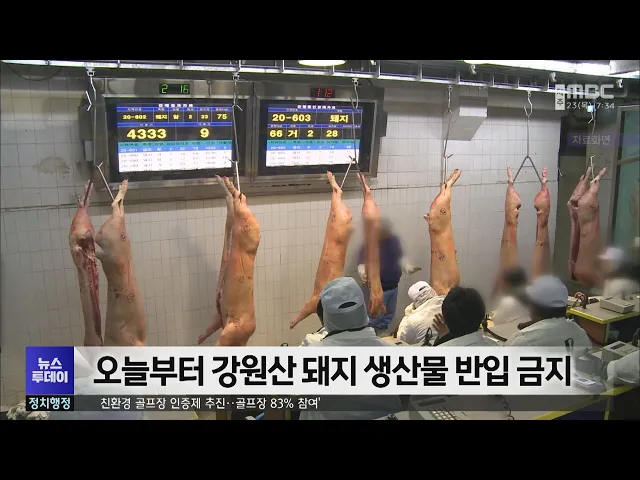 오늘(23일) 새벽 0시를 기해열처리되지 않은 강원산 돼지 생산물의 반입이 금지됐습니다.이번 반입 금지 조치는그제(21일)강원도 철원군의 한 양돈 농장에서 아프리카 돼지열병이 발생했기 때문입니다. 지난 1월 경기 파주에서아프리카 돼지열병이 발생한 이후 넉 달 만인데,제주도는 발생 빈도가 많이 줄긴 했지만멧돼지에...