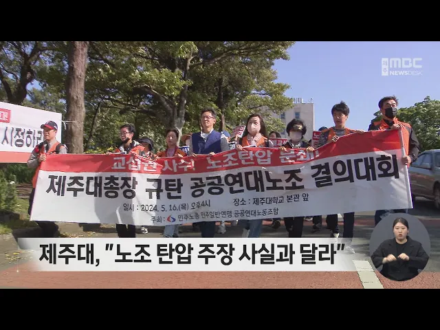 지난 16일 제주MBC가 보도한 제주대학교의 청소 노동자 탄압 논란과 관련해 제주대측이 노조측 주장은 사실과 다르다는 입장을 밝혔습니다. 학교측은 노동조합이학교가 교섭권을 박탈했다고 주장했지만지방노동위 결정에 따라 교섭창구단일화 절차를 진행했을 뿐이라고 설명했습니다. 또, 수당 미지급은 법원 판결 등에 따...