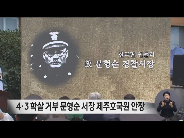 4.3 당시 학살 명령을 거부하고마을 주민 수백 명을 살린 문형순 성산포경찰서장이 국립묘지에 안장됩니다. 제주호국원은 지난해 12월 제주경찰청이 신청한 문형순 서장의 제주호국원 안장을 최종 승인했습니다. 문 서장은 1950년 성산포경찰서장 재임 당시 예비 검속자를 총살하라는 군의 명령을 거부해 도민 295명의 목숨...