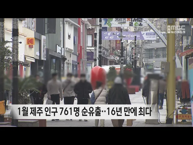 제주에서 한 달 동안 700명이 넘는 인구가 순유출되면서 16년 만에 가장 큰 인구 감소폭을 기록했습니다. 통계청에 따르면지난 1월 3천920명이 제주를 빠져나가고, 3천159명이 들어오면서 제주 인구는 761명 줄었습니다. 이는 지난 2008년 797명 이후 16년 만에 가장 큰 감소폭을 보인 것으로 제주 총 인구가 70만 13명으로...
