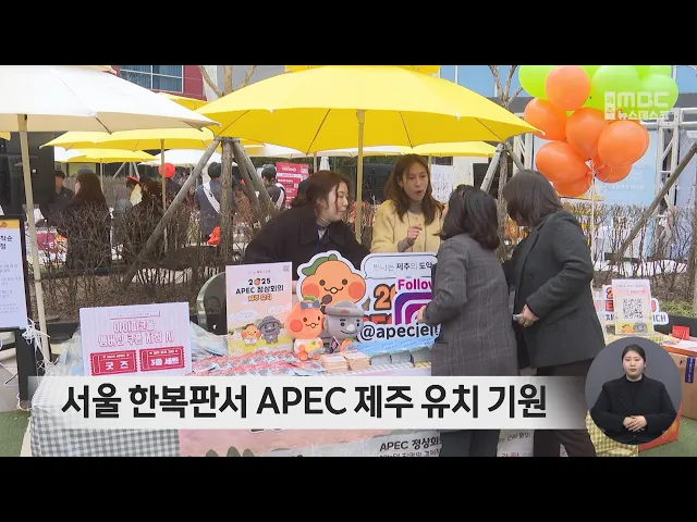 제주도가 내년 에이펙 정상회의 유치를 위해 서울에서 홍보전을 펼쳤습니다. 제주도는 오늘(28일)서울 아이파크몰 용산점에서 2025 에이펙 정상회의 제주 유치에 초점을 맞춰제주의 강점을 알리는 행사를 선보였습니다. 또, 제주도의 주요 정책을 알리고지역 생산품 판매와 연계한 소비촉진 행사도 벌였습니다. 오영훈 제주...