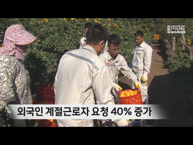 외국인 계절노동자를 요청하는 농가가 크게 늘었습니다. 제주시가 내년 상반기 외국인 노동자 수요조사를 한 결과농가에서 올해보다 40% 증가한 486명을 신청했습니다. 제주시는 도입의향서를법무부에 제출했으며, 심사 결과에 따라 확정된 인원은내년 1월 말부터 농가에 배치하기로 했습니다.한편, 제주시 지역에는 올해 ...