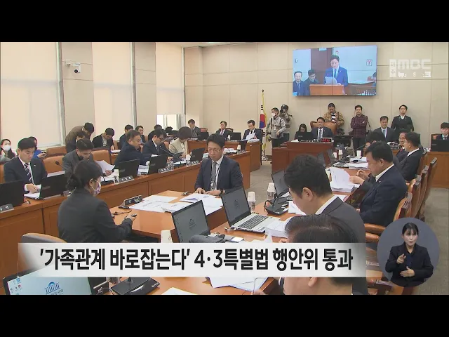 제주 4.3으로 뒤틀린 가족관계를 바로잡기 위한 4.3특별법 개정안이 국회 상임위를 통과했습니다. 국회 행정안전위원회는 어제(23일) 전체회의를 열고송제호 의원 발의와 정부 제출안을 병합한제주4.3특별법 개정안을 통과시켰습니다. 개정안은 앞으로 법제사법위원회 심사와본회의 의결을 남겨두고 있는데, 송재호 의원은...