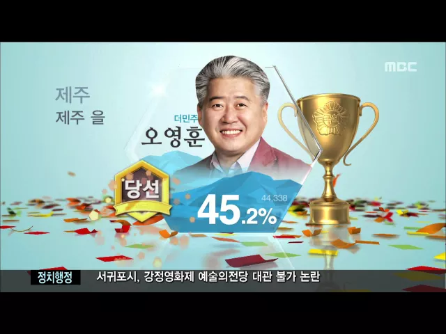 ◀ANC▶ 서귀포시 선거구는 당초 초박빙 승부 예측과 달리 더불어민주당 위성곤 후보의 완승으로 끝이 났는데요. 처음으로 국회 입성하는 위성곤 당선자는 서귀포의 1차산업을 살리겠다고 밝혔습니다. 김찬년 기자입니다. ◀END▶ ◀VCR▶ 서귀포시 선거구는 개표 시작과 함께 위성곤 후보가 크게 앞섰습니다. 초반부터...
