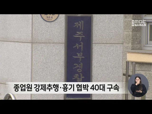 종업원을 강제추행하고 흉기로 위협한 40대 남성이 경찰에 구속됐습니다.제주서부경찰서는 특수협박과 준강제추행 혐의로 40대 남성을 구속하고 사건 경위를 조사하고 있습니다. 이 남성은 지난 6일 새벽 제주시의 한 주점에서 함께 술을 마시던 여성 종업을 강제 추행하고, 여성이 저항하자 주방에 있던 흉기를 들고와 협...