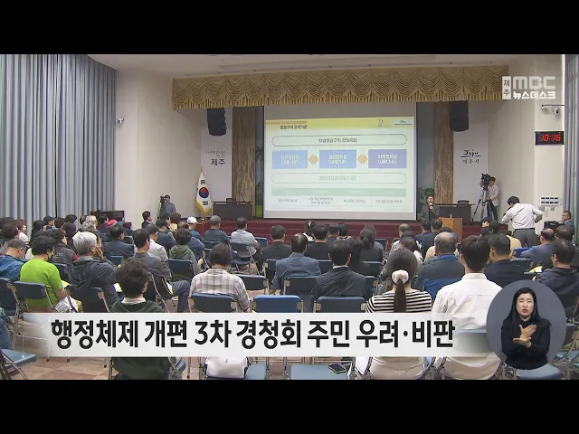 제주형 행정체제 개편 3차 공청회에서 용역진이 제시한 구역안에 대해주민들의 비판과 우려가 쏟아졌습니다. 제주시청 등에서 열린 3차 경청회에서 주민들은 국회의원 선거구나 동-서 제주군으로 나누면 생활권이 같은 동네가 분리되거나 도로 하나 차이로 다른 시 소속이 된다며하천 기준으로 구역을 나눠달라고 호소했습...