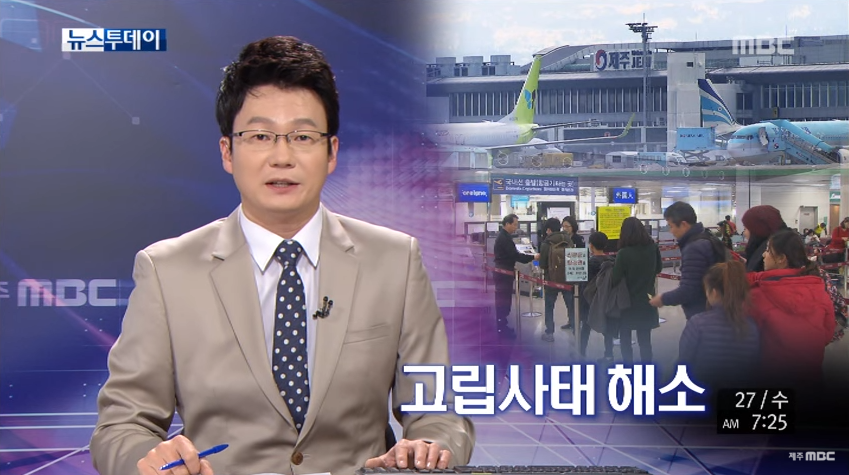 ◀ANC▶ 제주공항 항공기 운항이 정상을 되찾으면서 고립됐던 관광객 7만여 명이 돌아갔는데요. 하지만 공항 혼잡은 오늘도 계속됐고 국토교통부는 이틀째 24시간 운항을 결정했습니다. 김찬년 기자입니다. ◀END▶ ◀VCR▶ 승객들로 북새통을 이룬 공항 대합실. 발이 묶였던 관광객 수 만 명이 한꺼번에 몰리면서 발디...