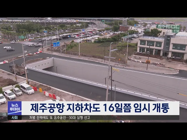 충북 오송 지하차도 침수 사고로 연기됐던 제주공항 지하차도가 오는 16일쯤 임시 개통합니다. 제주시는 다음주까지 침수에 대비한 차량 통제시설과 CCTV 등의 설치를 마무리하고 오는 16일쯤 임시 운영에 들어갈 계획입니다. 임시 운영 기간은 일주일 정도로 교통량 조사와 흐름 분석 등을 거쳐 이달 말 공식 개통할 예정...