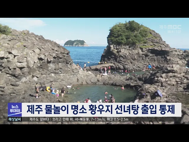 제주 유명 물놀이 명소인 황우지해안 선녀탕 출입이 임시 통제됩니다. 서귀포시는 선녀탕 주변 바위 낙석으로 인한 안전사고 우려가 제기돼 보수작업이 끝날 때까지 출입을 통제하고 있습니다. 선녀탕은 지난 4월 진행한 안전 점검에서 낙석 흔적과 진입로 계단 노후화 등으로 안전사고 발생 위험이 높은 재해위험 C등급으...