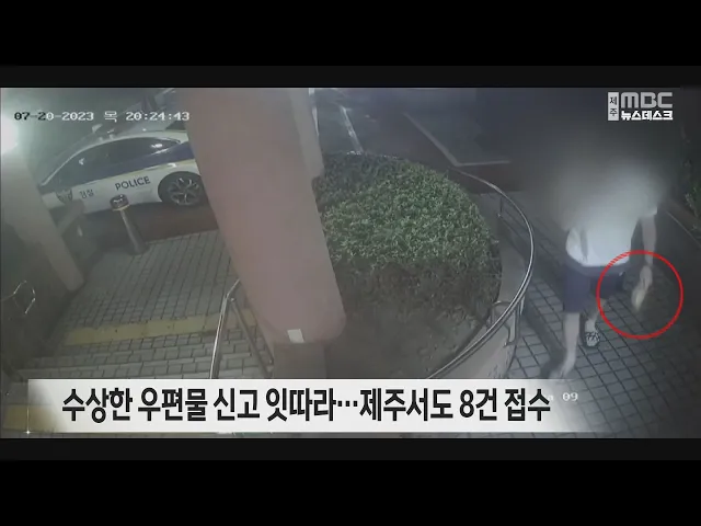 제주에서도 수상한 국제우편물을 받았다는 신고가 잇따르고 있습니다. 제주경찰청에 따르면 지난 20일 제주시 오라동을 시작으로 서귀포시 강정동과 제주시 구좌읍 등 모두 8곳에서 정체불명의 국제 우편물을 받았다는 신고가 접수됐습니다. 경찰은 수거한 우편물을 정밀검사를 할 예정인데, 노란색이나 검은색 우편 봉투...