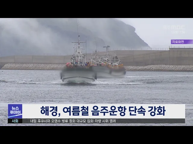 제주지방해양경찰청은 음주운항이 잦은 여름철을 맞아 주요 항포구에서 불시 단속을 벌입니다. 이번 단속은 해상교통관제센터와 항공기, 경비함정을 동원해 검문검색 방식으로 실시하며, 이달 말까지 계도기간을 거쳐 다음 달부터 두 달 동안 집중 단속이 이뤄집니다. 최근 3년여 동안 제주해역에서는 음주운항 25건이 적...