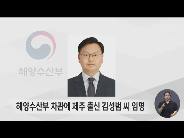 이재명 정부에 처음으로 제주 출신 차관급 인사가 임명됐습니다. 이재명 대통령은 해양수산부 차관에 김성범 해양수산부 해양정책실장을 임명했습니다. 김성범 신임 차관은 서귀포시 남원 출신으로 1994년 행정고시로 공직에 입문해 해수부 항만국장과 인천지방해양수산청장 등을 역임했습니다.