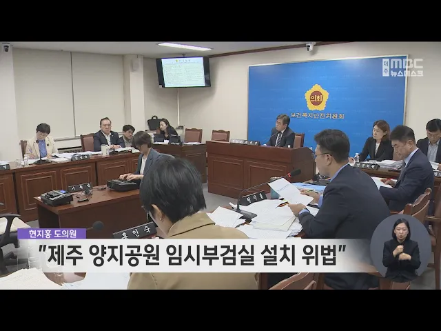 제주 양지공원의 임시 부검실이 위법하게 설치됐다는 지적이 도의회에서 제기됐습니다. 제주도의회 보건복지안전위원회에서 현지홍 의원은 관련 지침에 따라 종합병원이나 대학에 설치할 수 있는 부검시설을 장사시설에 설치한 것은 위법하다고 지적했습니다. 또 제주도가 심의 없이 공유재산에 대한 사용을 허가했다고 질...