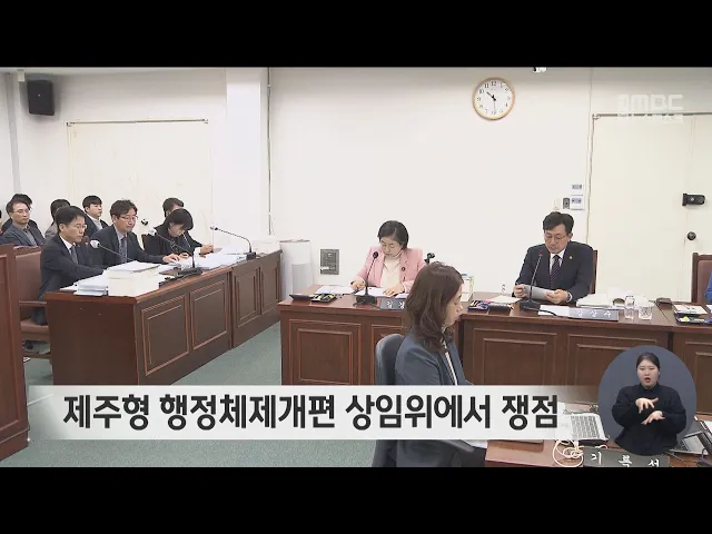 제주형 행정체제개편이 제주도의회 상임위에서 쟁점이 됐습니다. 오늘 열린 도의회 행정자치위원회에서 의원들은 제주도가 추진 중인 제주형 행정체제개편과 관련해 구체적인 향후 추진계획과 여당 국회의원들 사이에서도 엇갈리는 의견이 조율됐는지 따졌습니다. 이에 대해 제주도는 8월 주민투표를 실시한 뒤 법 개정 절...