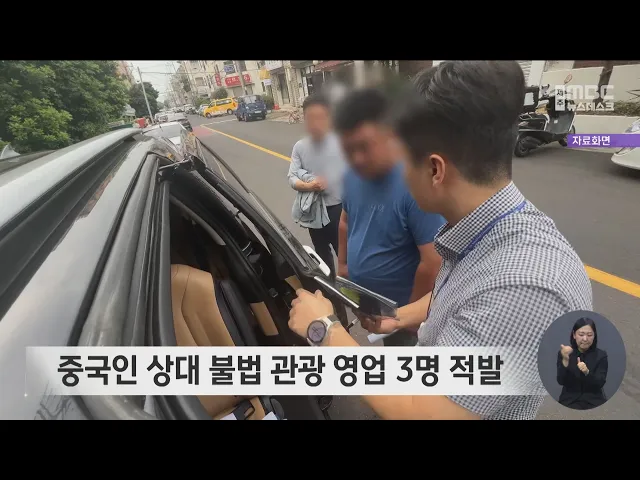중국인을 상대로 한 불법 관광 영업이 잇따라 적발됐습니다. 제주도 자치경찰단은 지난 10일, 중국인 관광객 9명을 태우고 제주시내 모 호텔에서 관광지를 돌며 우리돈으로 17만 원 상당을 받고 불법 유상운송한 혐의로 40대 한국인 남성을 적발하는 등 중국인 상대 불법 관광영업을 한 3명을 적발했습니다. 불법 관광영업...