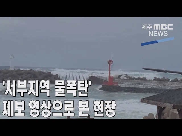 ◀ANC▶ 태풍이 오기도 전에 제주 서부지역에는 어제(9/4) 시간당 70밀리미터가 넘는 물폭탄이 쏟아지면서 곳곳이 침수됐는데요, 많은 시청자 분들께서 제보 영상을 통해 당시 상황을 전해주셨습니다. 홍수현 기자입니다. ◀END▶ ◀VCR▶ 오후 1시 반쯤 서귀포시 대정읍 해안로 부근 모습입니다. 도로 옆으로 보이는 ...