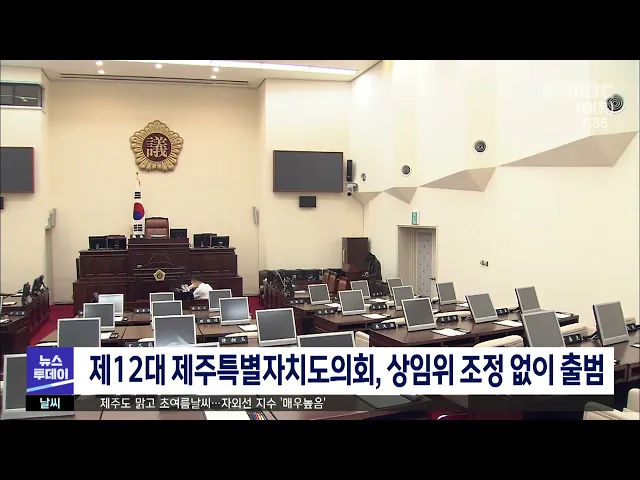 제12대 제주특별자치도의회가 상임위원회 조정 없이 출범할 전망입니다. 제주도의회에 따르면 상임위 개편안 부결 이후, 수정 보완 상정을 위한 논의가 진행되지 않아 오는 14일부터 시작되는 임시회에서 상임위 개편 안건이 상정되지 않을 것으로 보입니다. 다만, 2명이 늘어난 도의원을 각각 보건복지안전위원회와 문화관...