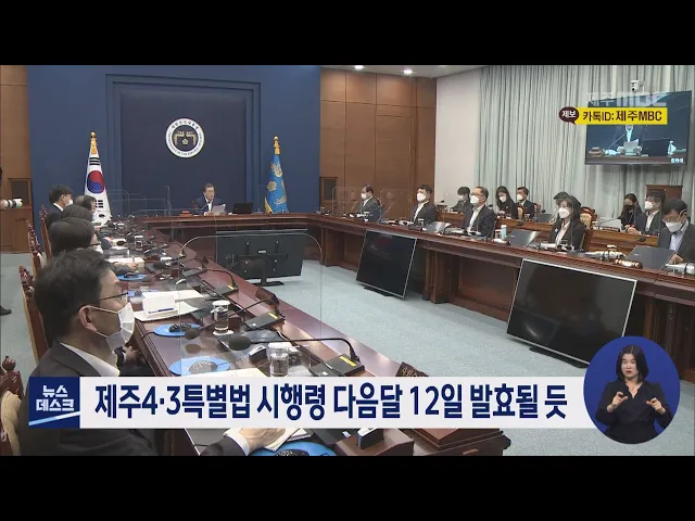 제주4.3특별법 시행령이 다음달 발효될 것으로 보입니다. 행정안전부와 오영훈 국회의원 등에 따르면 제주4.3특별법 시행령이 법제처 심사를 통과해 다음달 5일 국무회의에서 의결되면 12일 발효될 전망입니다. 이번 시행령에는 보상금 지급결정 신청을 오는 6월부터 3년 이내에 완료하도록 하고, 4.3희생자와 유족 추가 신...