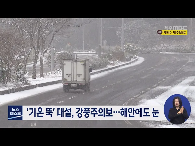 오늘 제주지방은 산지에 대설주의보, 남부를 제외한 육상에 강풍주의보가 발효된 가운데, 제주시 낮 최고기온이 어제보다 4도 가까이 떨어진 4.3도에 머물렀습니다. 기상청은 내일까지 추위가 이어지고, 산지에 최고 7센티미터의 눈이 예상돼 교통안전에 주의해달라고 당부했습니다. 해상에는 제주도 앞바다에 풍랑주의보...