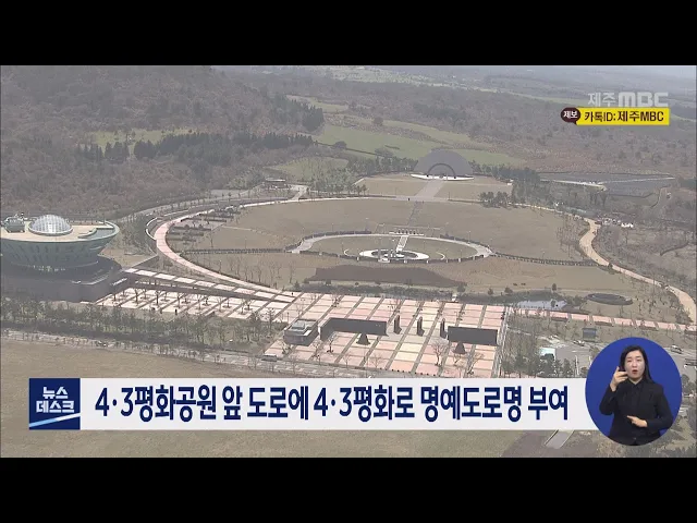제주4.3평화공원 앞 도로에 4.3평화로라는 명예도로명이 부여됩니다. 제주시는 봉개동 명도암 교차로에서 4.3평화공원을 지나 명도암 입구 교차로까지 7.4킬로미터 구간에 4.3평화로 명예도로명을 부여하기로 했습니다. 제주시는 다음달 주소정보위원회 심의를 거쳐 4.3희생자 추념일 전에 결정 고시할 계획입니다.