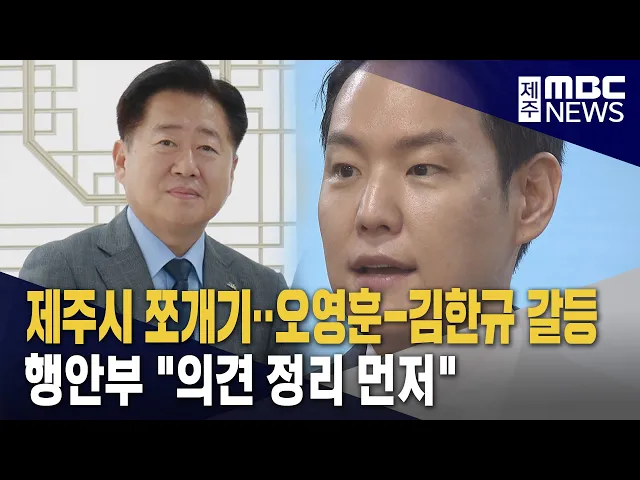 ◀ 앵 커 ▶ 제주시를 두 개로 쪼갤지 말 지 도민 여론조사를 실시하자는 이상봉 도의회 의장의 제안에 후폭풍이 거세지고 있습니다. 제주시를 동.서로 나누는 기초자치단체를 행정안전부에 제안한 오영훈 도정과 제주시 쪼개기 방지법을 발의한 김한규 국회의원 사이의 민주당 내 대립이 갈등으로 표출되는 모양새입니다. 홍...