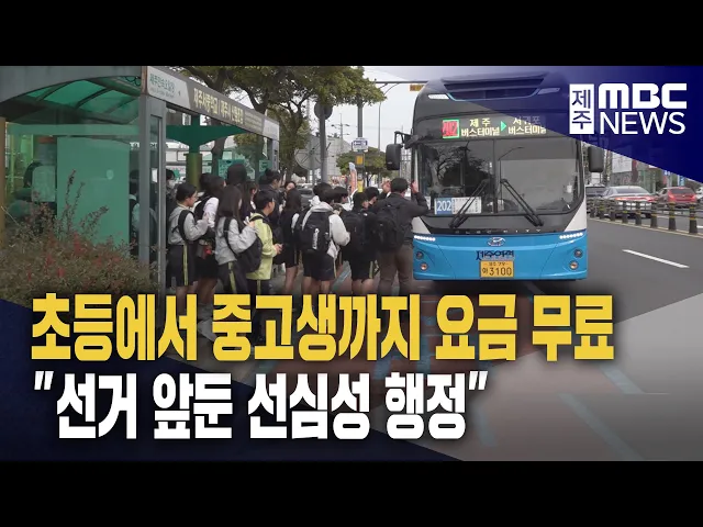 ◀ 앵 커 ▶ 제주도의 버스 요금 인상 계획에 대해 제주도 물가대책위원회가 제동을 걸었다는 소식 어제 전해드렸는데요, 제주도가 요금 인상을 추진하면서 한편으로는 무료 대상을 잇따라 확대해 선심성 정책 아니냐는 비판도 나오고 있습니다. 홍수현 기자입니다. ◀ 리포트 ▶ 제주도와 제주도교육청이 청소년 버스 무료 이...
